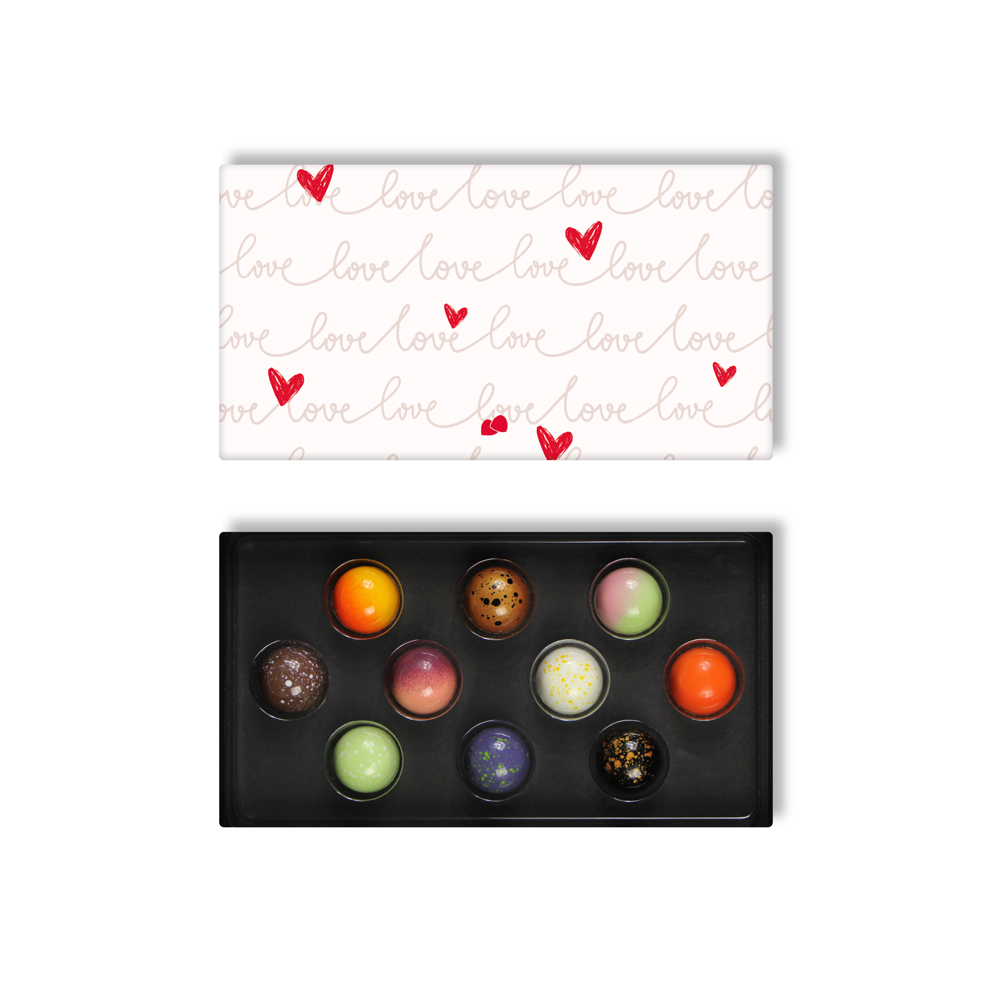 Verras je geliefde met 10 handgemaakte fairtrade bonbons, perfect als romantisch chocoladecadeau voor Valentijn of jubilea. Voeg een hartelijke boodschap toe voor een uniek klein brievenbuscadeau!
